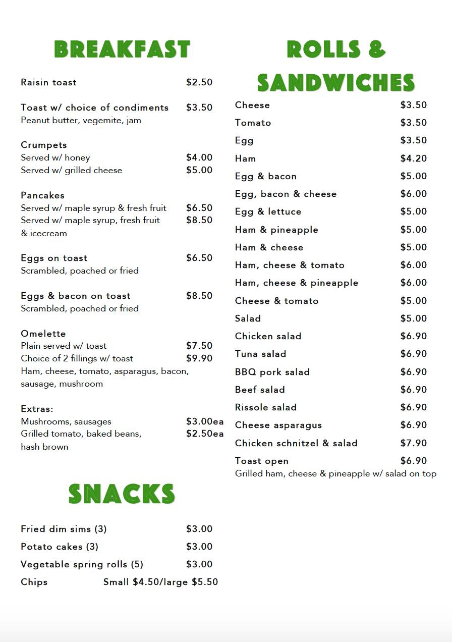 Menu Of Palm Tree Cafe 25 Aberfeldie Melbourne